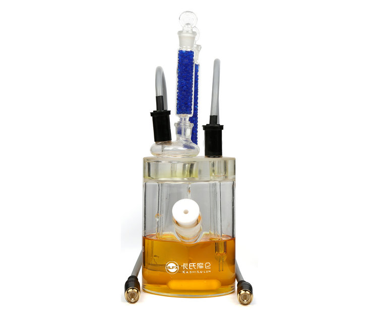 電解池:用于測定樣品中的水分,由陰極室(電解電極)干燥管、電解電極、陰極室(電解電極內腔)、攪拌子、陽極室(電解池瓶)干燥管、測量電極、進樣旋塞、陽極室(電解池瓶)組成。