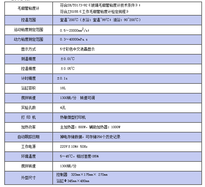 儀器符合GB/T265標準,也適用GB1841標準所規定的塑料樹脂等其他產品的運動粘度。儀器采用先進的單片機、彩色中文液晶顯示,溫度控制準確、精度高,自動計時、自動計算運動粘度和動力粘度、自動打印測定結果,外形結果新穎,是一款國內較先進的運動粘度測定儀。